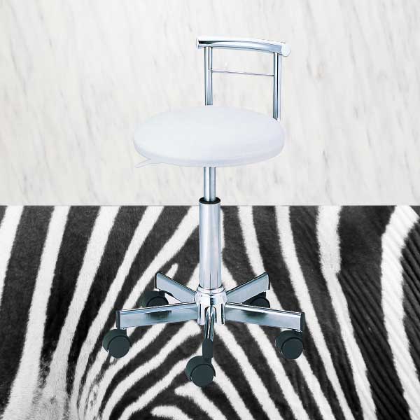 ガス圧式レバーでラクラク昇降。足回りのデザインが特徴的な背付チェア。