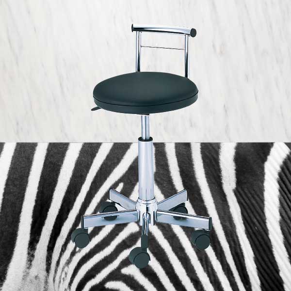 ガス圧式レバーでラクラク昇降。足回りのデザインが特徴的な背付チェア。