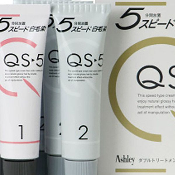 専用ブラシで5分間放置のヘアカラー。アルカリ・酸化染毛剤。