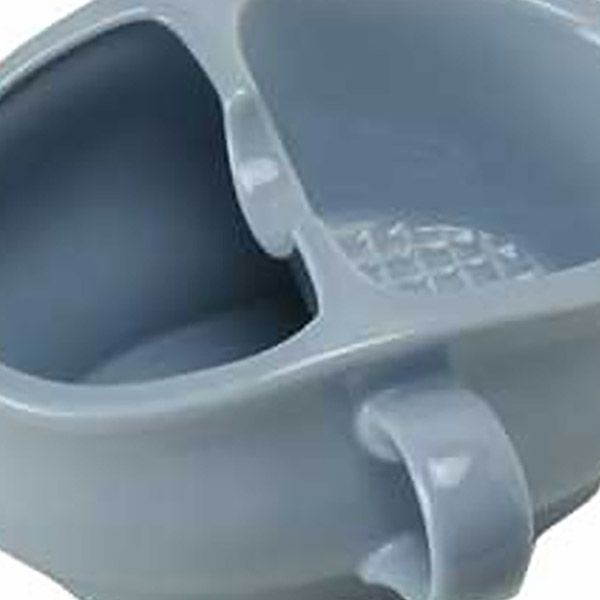 カップの底がザラザラしているほうにソープを入れ、もう片方にはお湯を入れてカップ全体とヒゲブラシのブラシ部分をつけて温める。ザラザラしたほうに温かいブラシでソープを泡立てて使う。泡立てやすいように、泡立て器の底面には凸凹がついている。熱くならず持ちやすい取って付き。