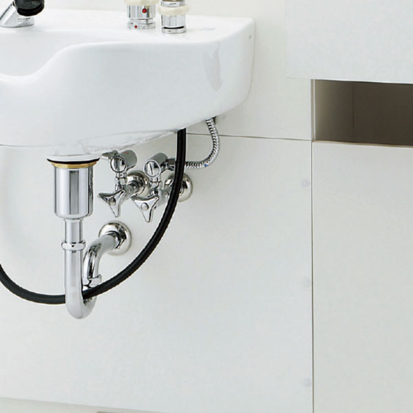 シンプルなデザインで使い勝手の良いシャンプーユニット。便利な一口コンセント付き