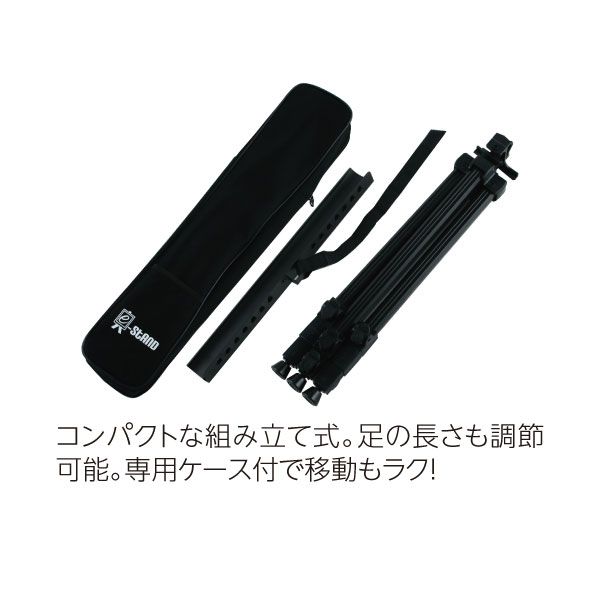 コンパクトな組み立て式。足の長さも調節可能。専用ケース付で移動もラクラク。