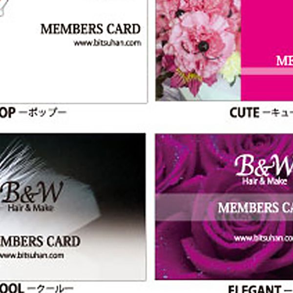 豊富なサンプルの中からお好みのデザインを選んで注文! 貴店だけのオリジナルメンバーズカードが作れる。