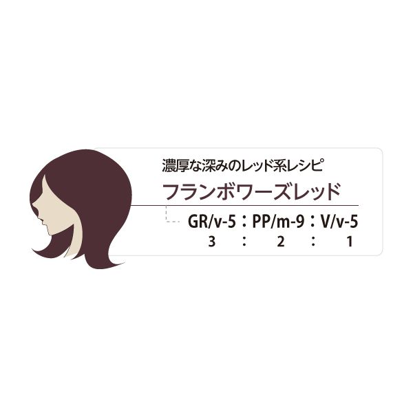 鮮やかでファッショナブルなVividcolor(高彩度ライン)、落ち着いた色味のModeratecolor(中彩度ライン)、グレイヘアをきれいに染めるDeepcolor(低彩度ライン)の3つのラインをひとつのブランドにラインアップ。ミックス自在で、ファッションカラーからファーストグレイカラー、グレイカラーに対応できる幅広いヘアカラーを実現。