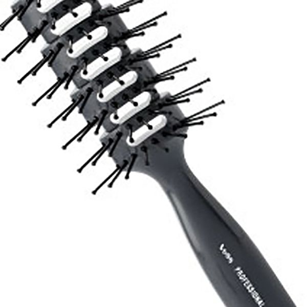 ブラシの植毛面に穴があるのでドライヤーの熱風をムラなく通す。ブロー効果の高いスタイリングブラシ。