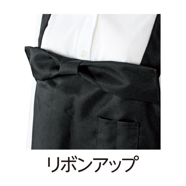 胸元とポケットに大きなリボンが付いたかわいいエプロン。