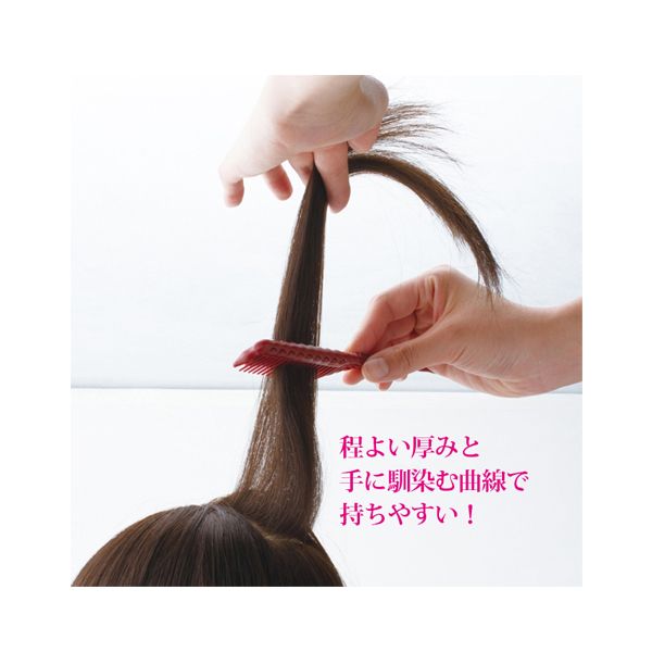 しなやかさと強度を併せ持っているから髪に無理な負担がかからず傷みにくい。V字構造の継ぎ目のない仕上がりで裂け目が出来にくく、細かな逆毛を立てる事ができる。程よい厚みと手に馴染む曲線で持ちやすい逆毛コーム。