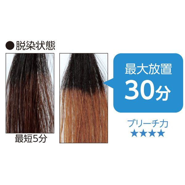 スピーディーかつ強力な脱色効果で黒髪を一度で明るく軽やかにする。固めで垂れにくいのに伸びが良く、ウィービングに最適。