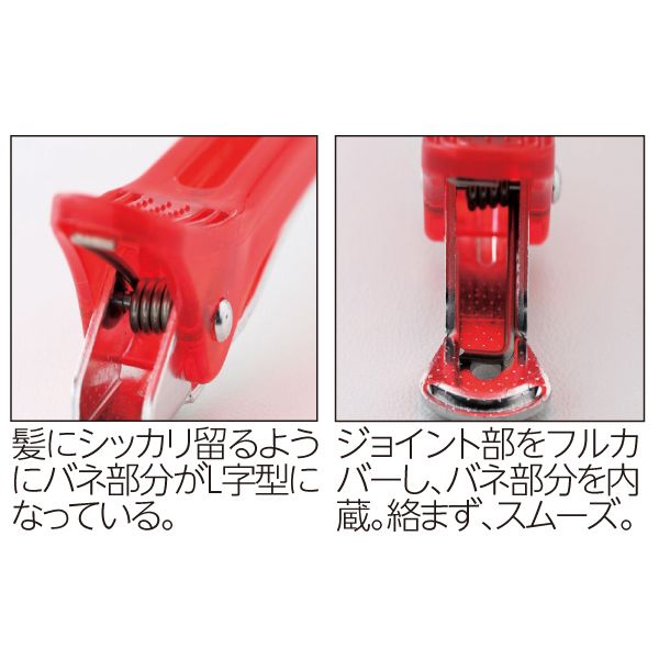 髪のひっかかりを防止するためジョイント部をフルカバーにし、バネ部分をジョイント部に内蔵。髪が絡むことなくスムーズに使える。