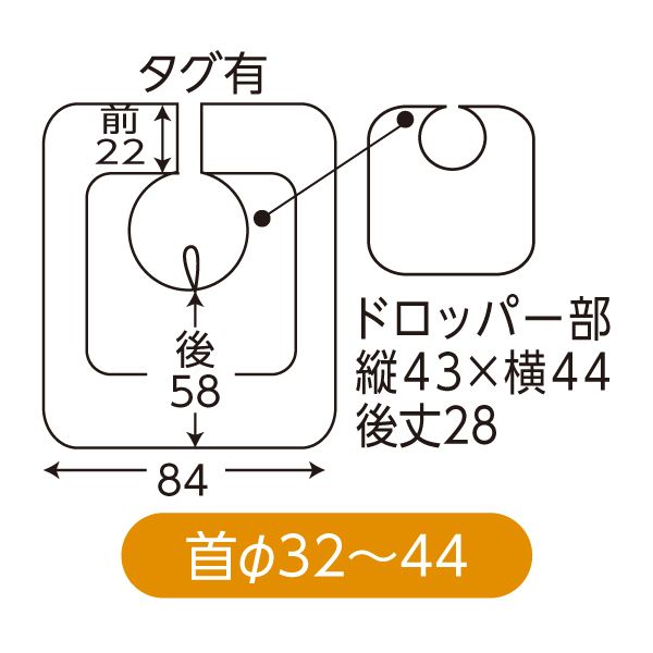 ●サイズ/本体:全長98cm、後丈約58cm、幅約84cm、首周り約φ32〜44cm、ドロッパー:後丈約28cm、幅約44cm
