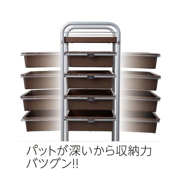 ●仕様:天板1段、引き出し式深型パット4段、固定式カゴ1段