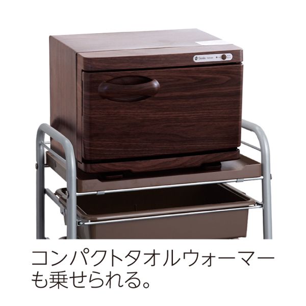 コンパクトタオルウォーマーも乗せられるゆったり棚設計のワゴン。