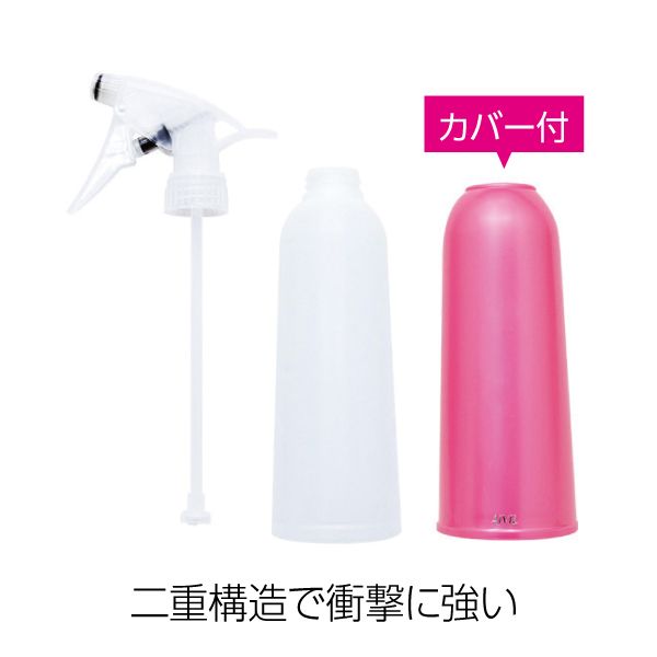 衝撃に強いエストラマー製のカバーが落下の衝撃を吸収。ノズルの先で奮霧状態を調整できる。