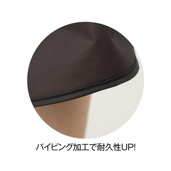 高コスパで丈夫で長持ち!ナイロンのしっかりしたつくりでパイピングが施されているため耐久性よし。防水加工で水・汚れにも強いシングルタイプのシャンプー用ケープ。