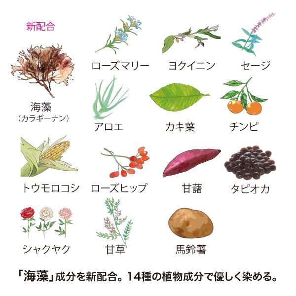 14種類のハーブやミネラルを主成分としているので、トリートメント効果が良く、ごく少量の酸化剤で白髪にしっかり色が入る。