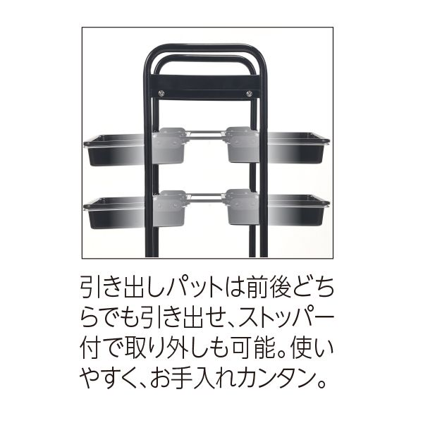 ●仕様:天板1段、引き出し式パット3段、固定式カゴ1段