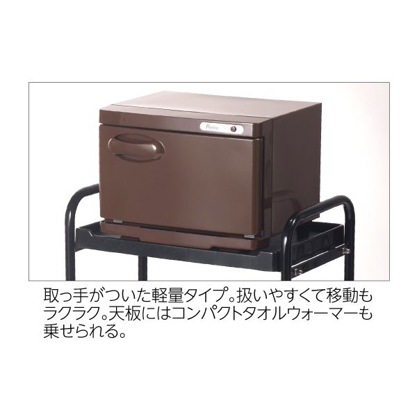 取っ手付きで軽量だから扱いやすくて移動もラクラク。天板にはコンパクトタオルウォーマーも乗せられる。