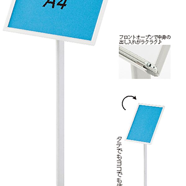 A4サイズが納まる、案内板。タテでもヨコでも使用可能。