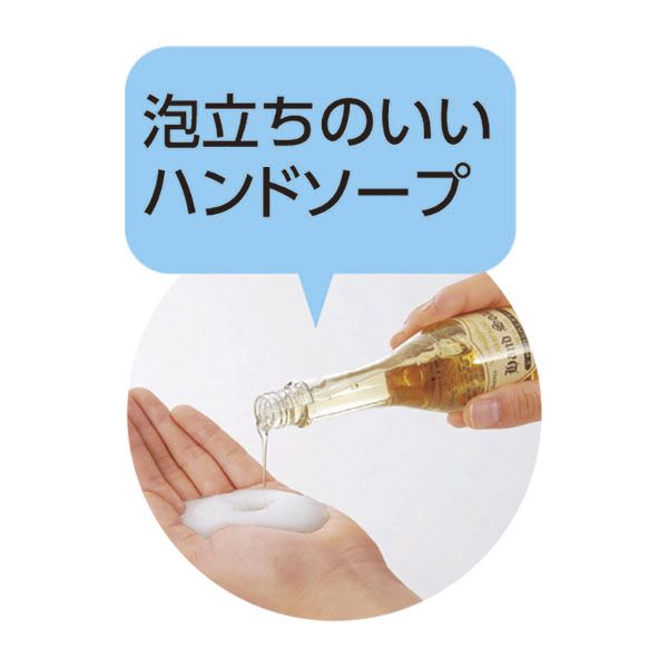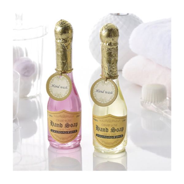 シャンパン風のボトルに入った泡立ちのよい液体ハンドソープ。
