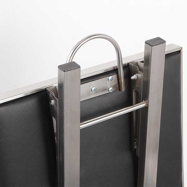 また、裏地は革張りクッションになっているので、傷がつきにくく、折り畳みの際も音が気にならない。