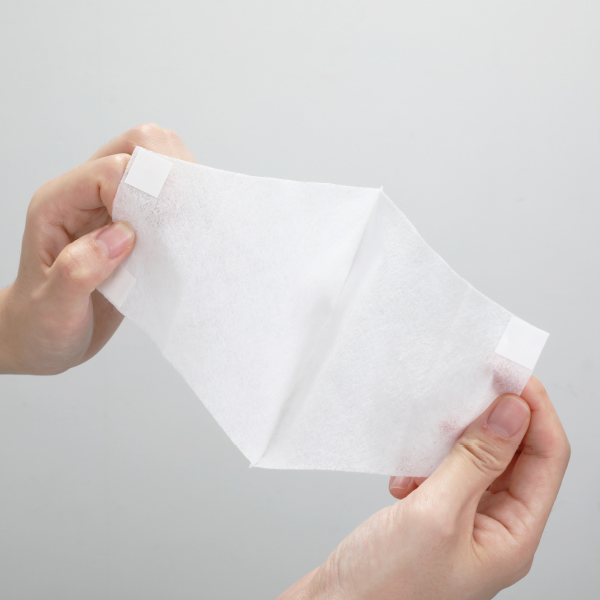 不織布の両端4箇所にテープが付いているので、貼り付けも簡単。