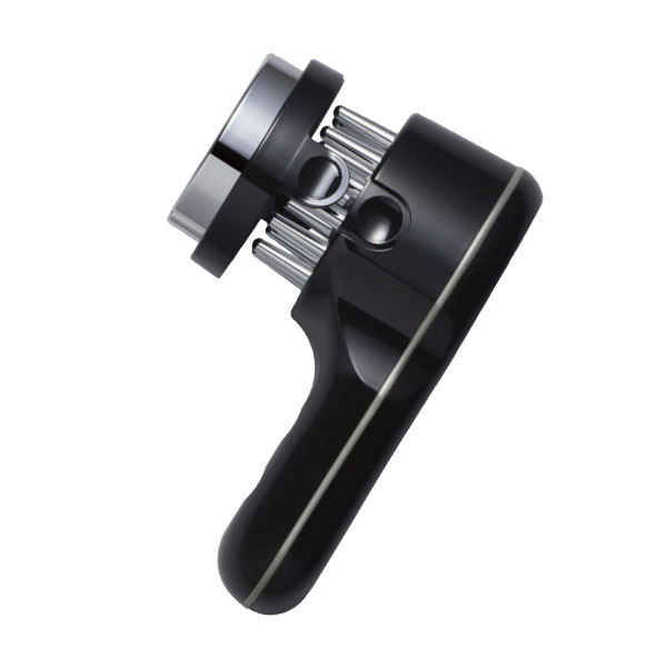 次に、頭皮に電極がしっかりと当たるように押し当て、そのまま360度方向どこからでも、頭頂部に向かってTILLETを動かします。
