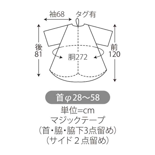 ●サイズ:前丈約120cm、後丈約81cm、首周り約28〜58cm