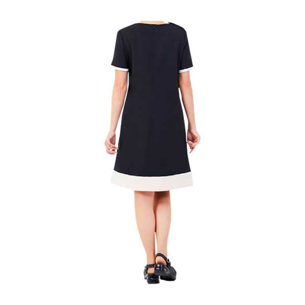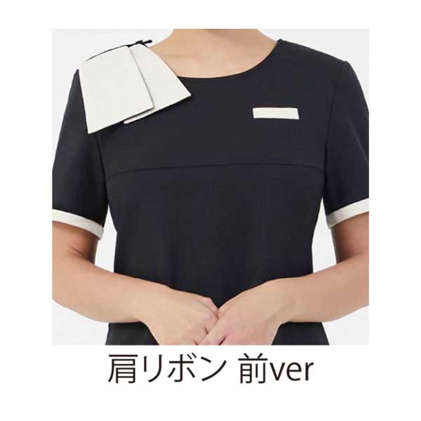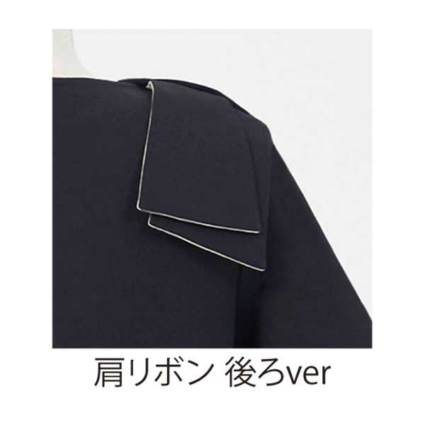 前後に変動可能な肩リボンが顔まわりを華やかに、優雅な印象でコンシェルジュやフロントワークにもおすすめのデザイン。