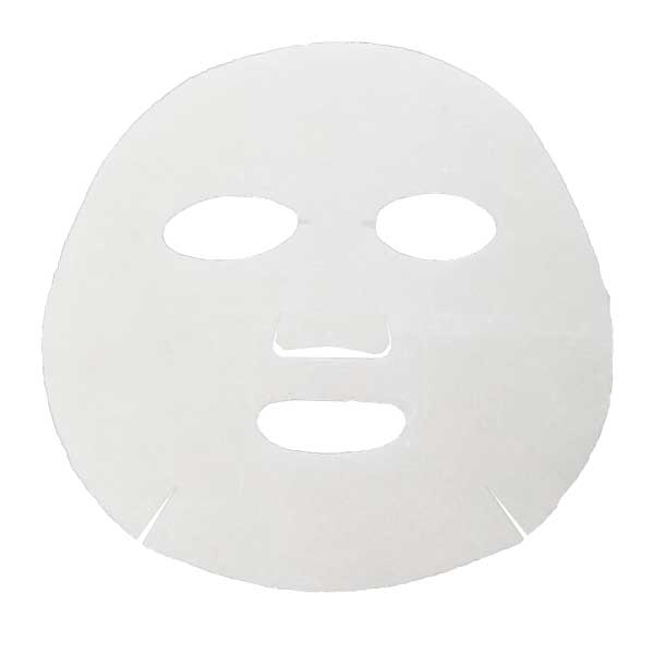 洗顔後、袋を開けてマスクシートを1枚ずつ取り出し、目と口の部分を顔に合わせてフィットさせる。