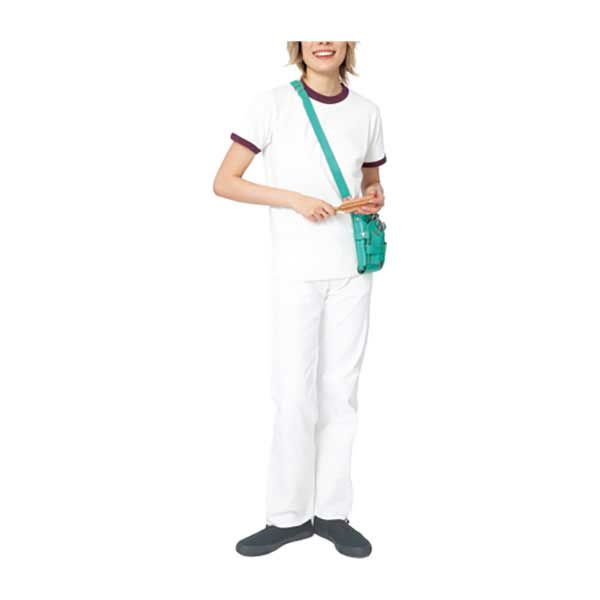 洗礼されたデザインの合皮シザーケースは5丁差しで手前にはダッカールを差せて、ベルトで使いやすい位置で使える。