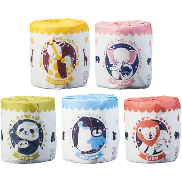 アニマルイラストが可愛らしいトイレットペーパーの5種アソートセット。