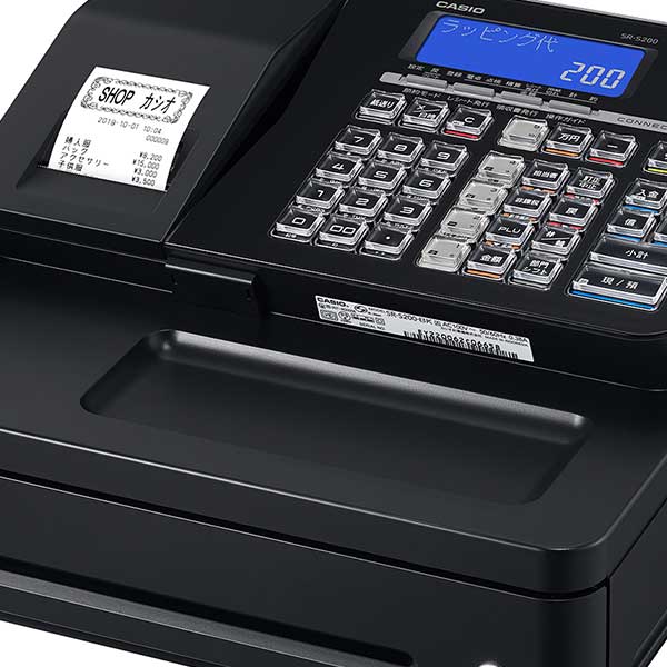 また、漢字・ひらがな・カタカナ表示に対応したバックライト付2段大型液晶を採用しているので、照明を落とした店内でも見やすい。