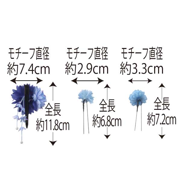 ダリアとポンポン菊の花飾り 下がり付 4点セット アオ