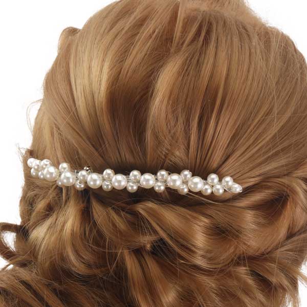 パールをたっぷりとあしらったゴージャスなバレッタ。