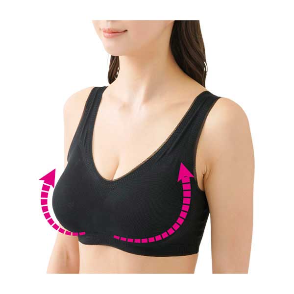 全面エアーホール構造のエアースルーパッド内蔵。下厚構造でバストを寄せて支える。