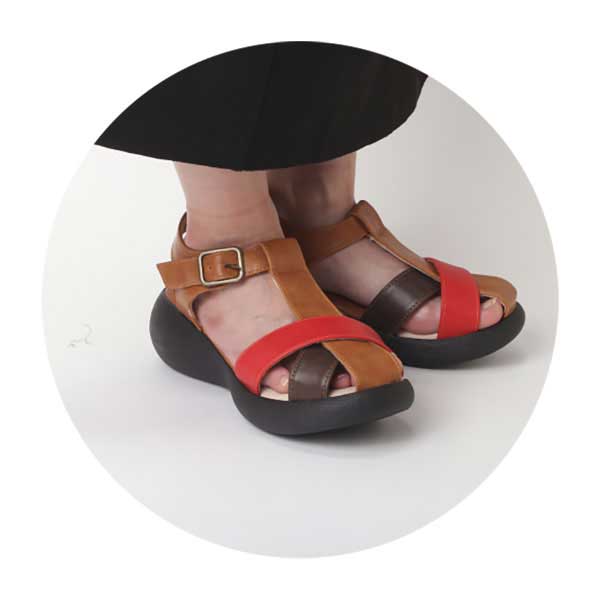 足首からつま先にかけて中心を通るベルトは足長効果も。