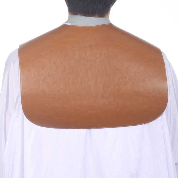肩にかけ、胸元部分を重ねて肩と背中谷フィットするように装着。