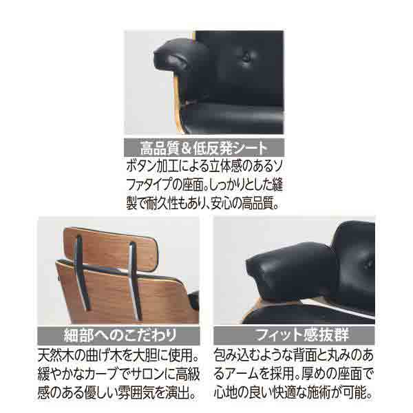 ほどよく傾斜した背もたれと、温かく包まれるようなレザーの質感は、人間の体の形に快適にフィットすることを極めたセット椅子です。「よく使い込まれた一塁選手のグローブみたいな暖かい印象を持たせたい」とのイームズ夫妻のコンセプトに相応しい重厚感と座り心地を約束してくれる一脚。