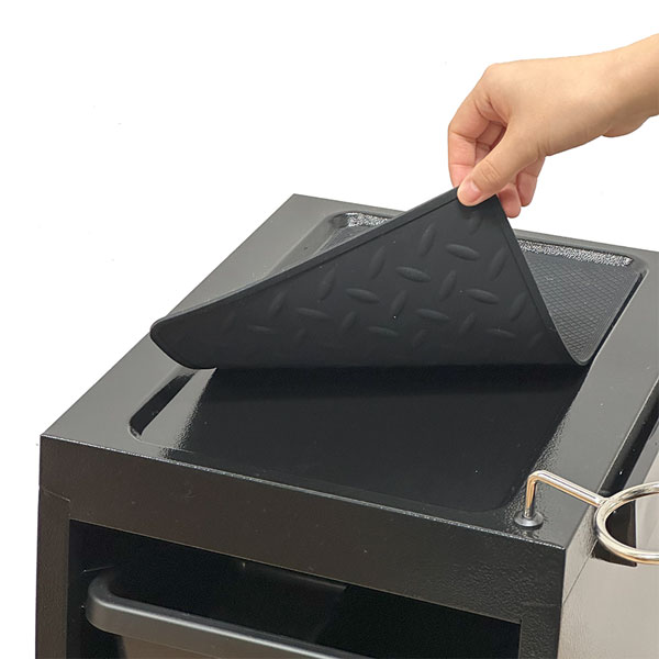4つ引き出しトレイと2つの仕切り付きトレイ、天板に置ける耐熱性シリコンマットが付属されており、使い勝手も◎。