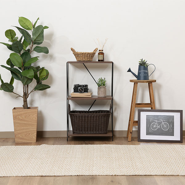 ●材質:構造部材(フレーム)/金属(鋼)、表面加工(フレーム)/エポキシ樹脂塗装 、表面材(棚板)/プリント紙化粧パーティクルボード