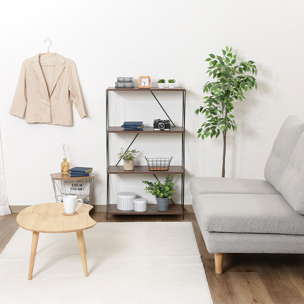●材質:構造部材(フレーム)/金属(鋼)、表面加工(フレーム)/エポキシ樹脂塗装、表面材(棚板)/プリント紙化粧パーティクルボード