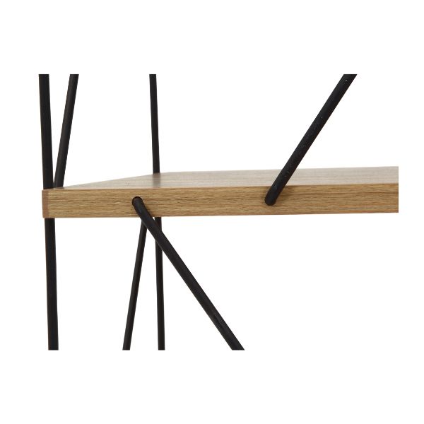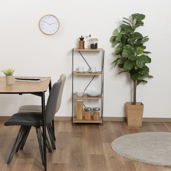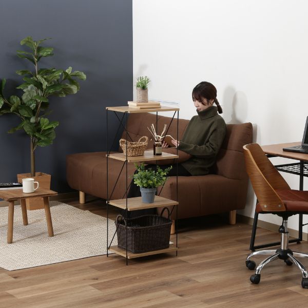 木目調の棚板とワイヤーフレームを組み合わせたスタイリッシュデザインのラック。