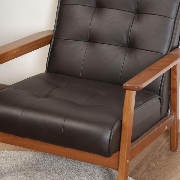 ●材質:構造部材:天然木/張り材:合成皮革(PU)/クッション材:ウェービングベルト/ウレタンフォーム/背面:ウレタンフォーム/脚部:天然木(ラバーウッド)