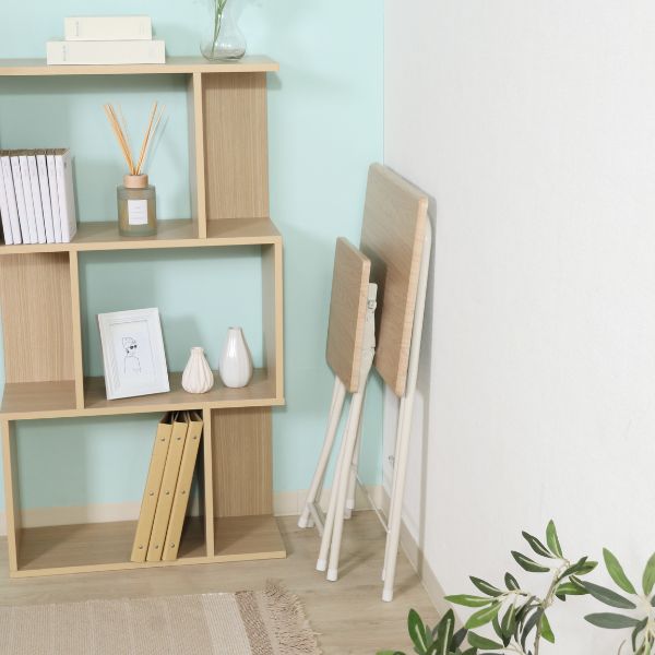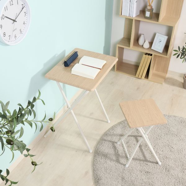 パタッと折りたためて省スペースに収納できるコンパクトなテーブル&チェアセットは、カウンセリングや書き物、PC作業などにちょうど良いサイズ感。