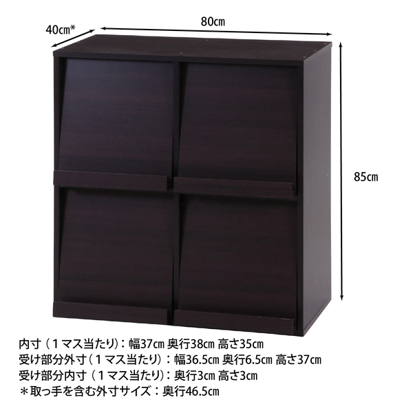 ●サイズ:全体/幅800mm × 奥行465mm × 高さ850mm 収納内寸(1マス)/370mm × 380mm × 350mm