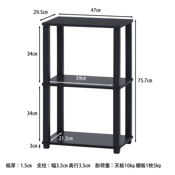 工具不要で簡単組み立て!おしゃれに見せる3段オープンラック