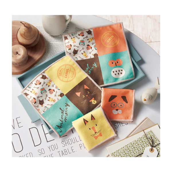 ハンカチタオルにデザインされたキュートなアニマルキャラクター。