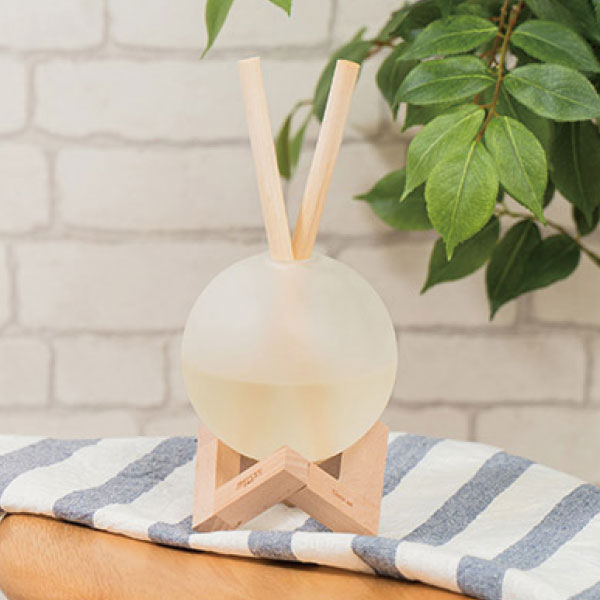 落ち着きのあるスモークガラスに丸みを帯びたフォルムがかわいらしいリードディフューザー。