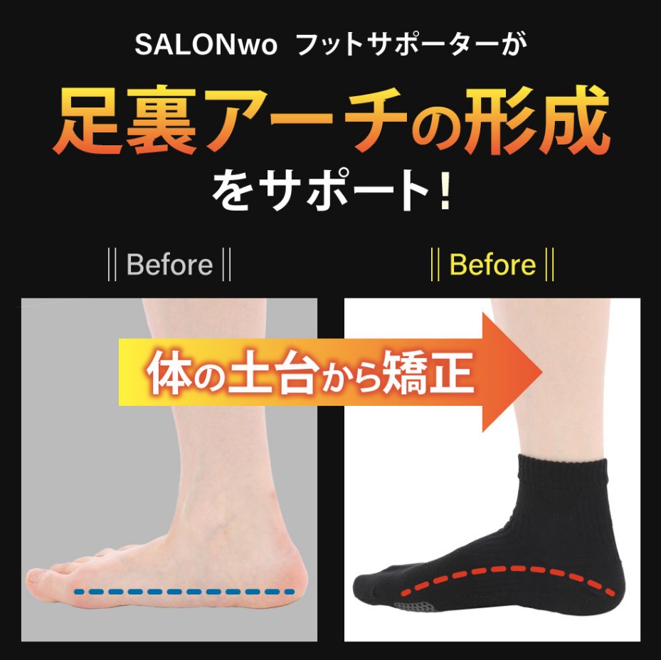 特許技術採用のサポーターが足裏の土踏まずのアーチを矯正。