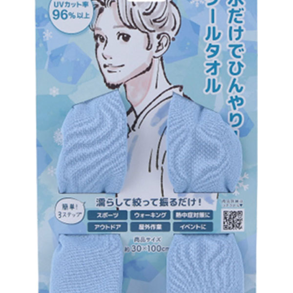 水の蒸発による気化熱+特殊素材の効果で冷たさを感じる仕様。